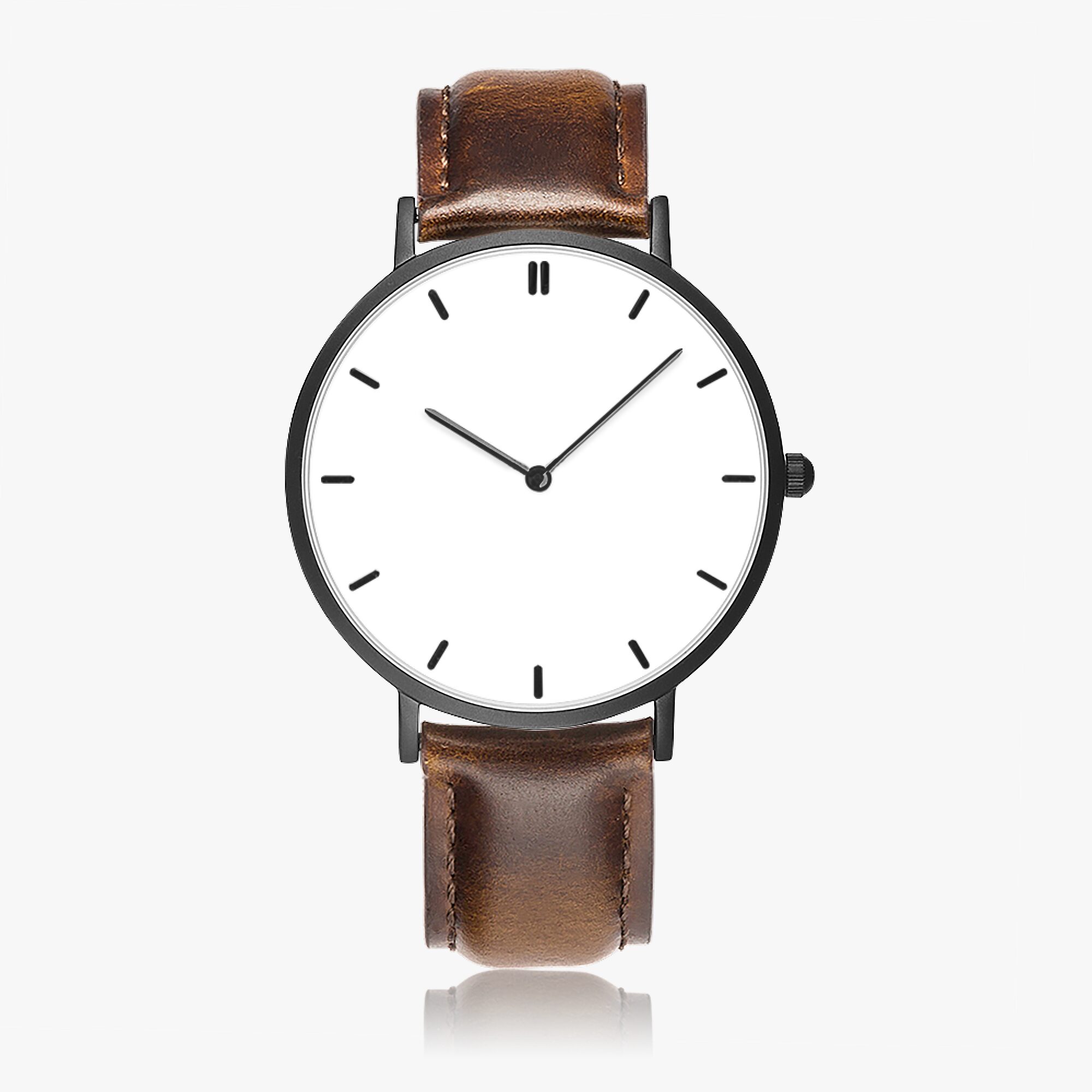 Ultra-Thin Unisex Leather Quartz Watch – Citizen Movement. Customize 1 Piece