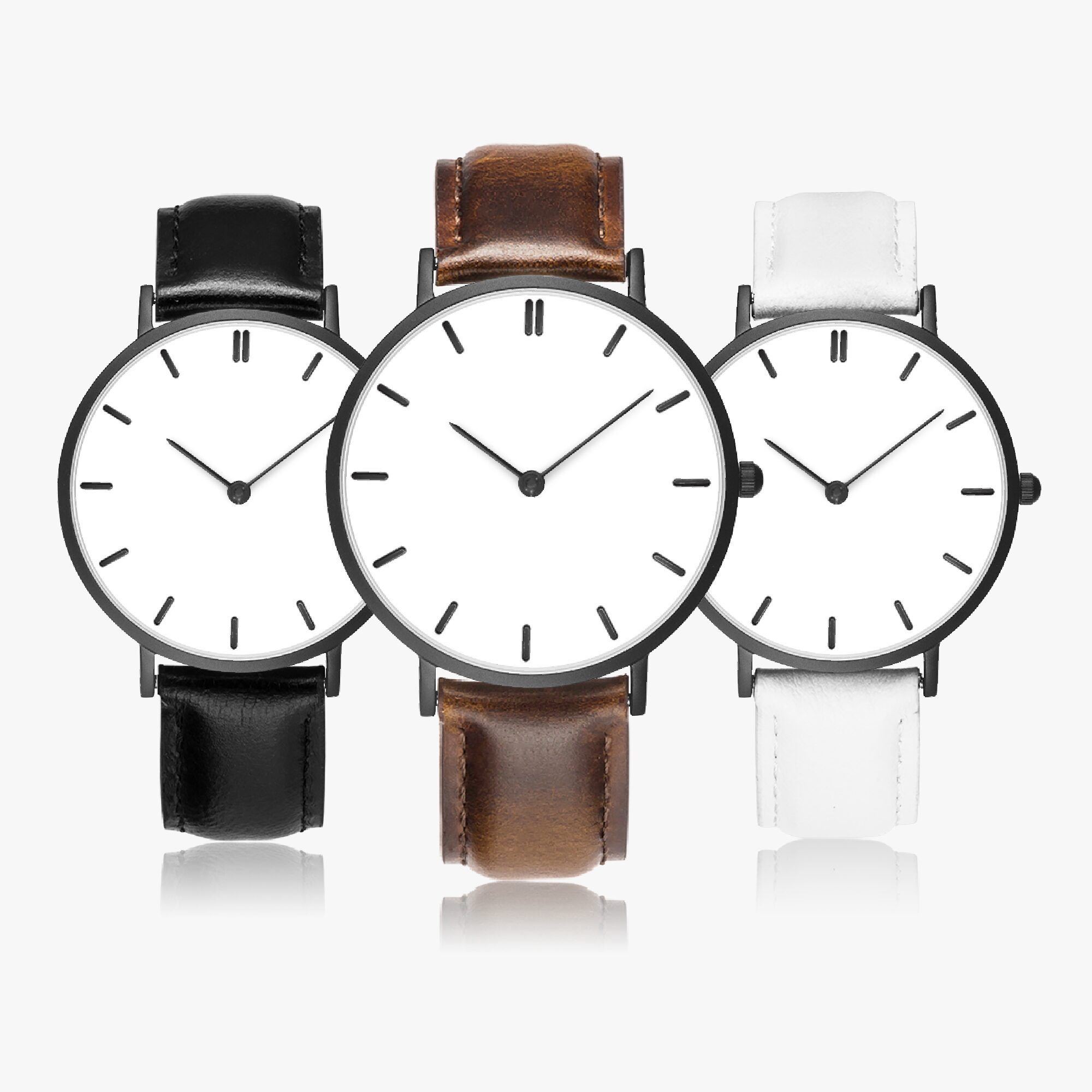 Ultra-Thin Unisex Leather Strap Quartz Watch – Premium Quality & Personalization