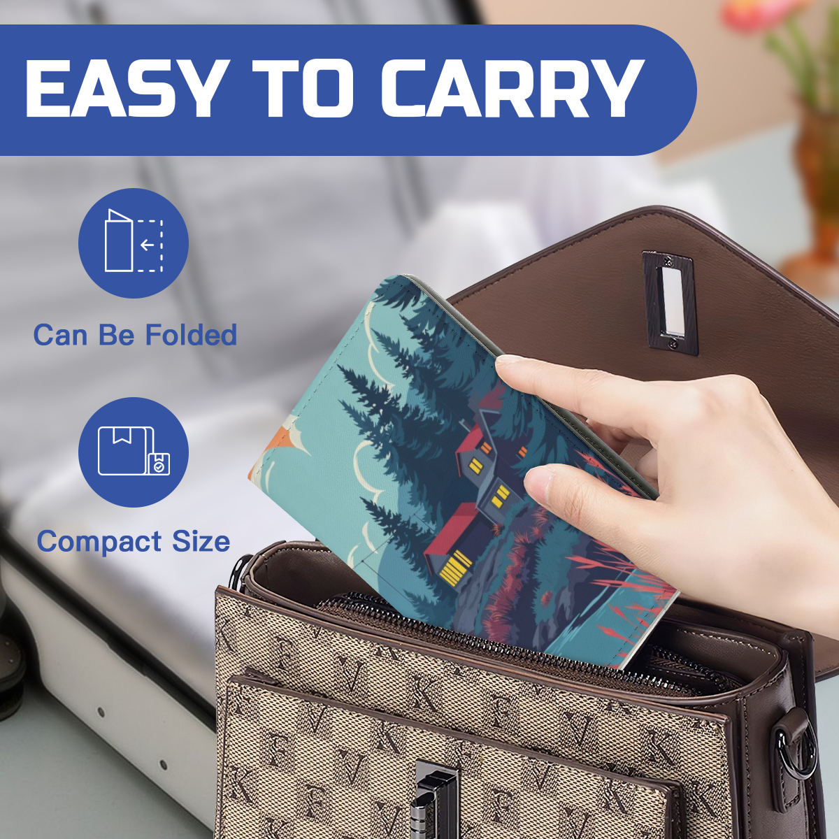 Featuring a cozy home surrounded by nature, it brings a sense of peace, creativity, and individuality to your travel gear—perfect for travelers who appreciate distinctive designs.