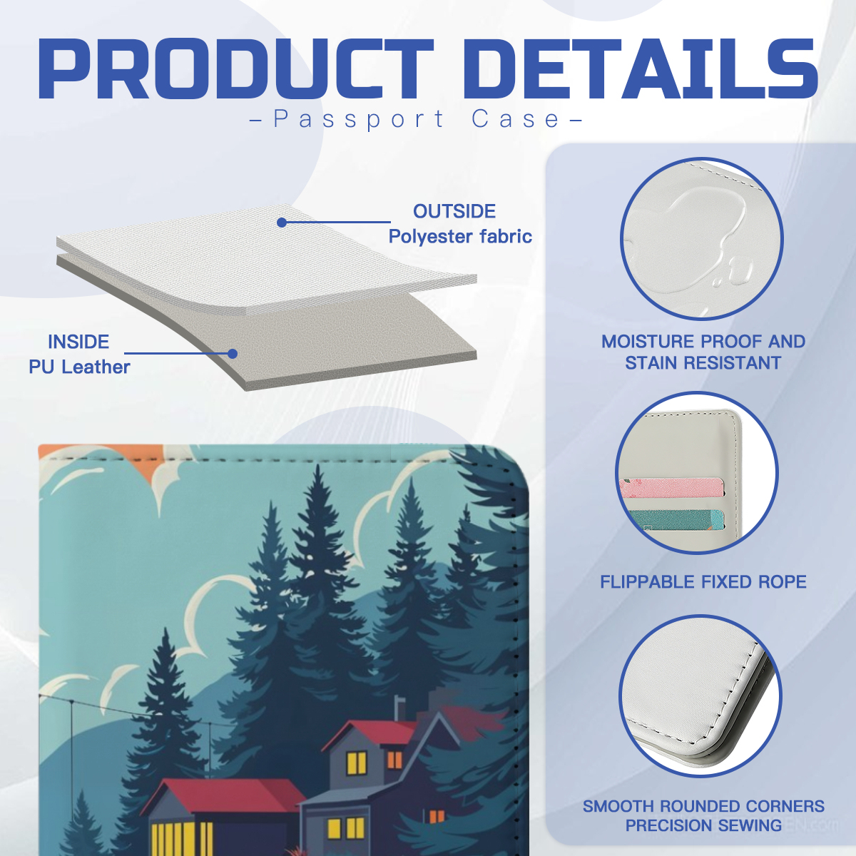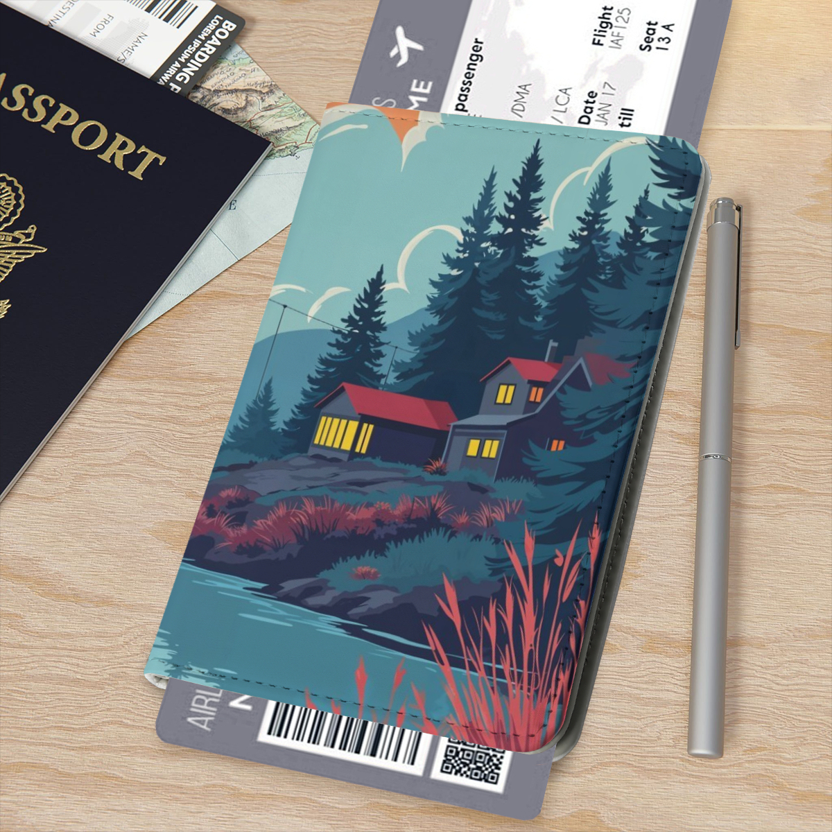 Passport Cover with Landscape House Design for Men and Women is a stylish and durable travel accessory designed for modern travelers in the USA.