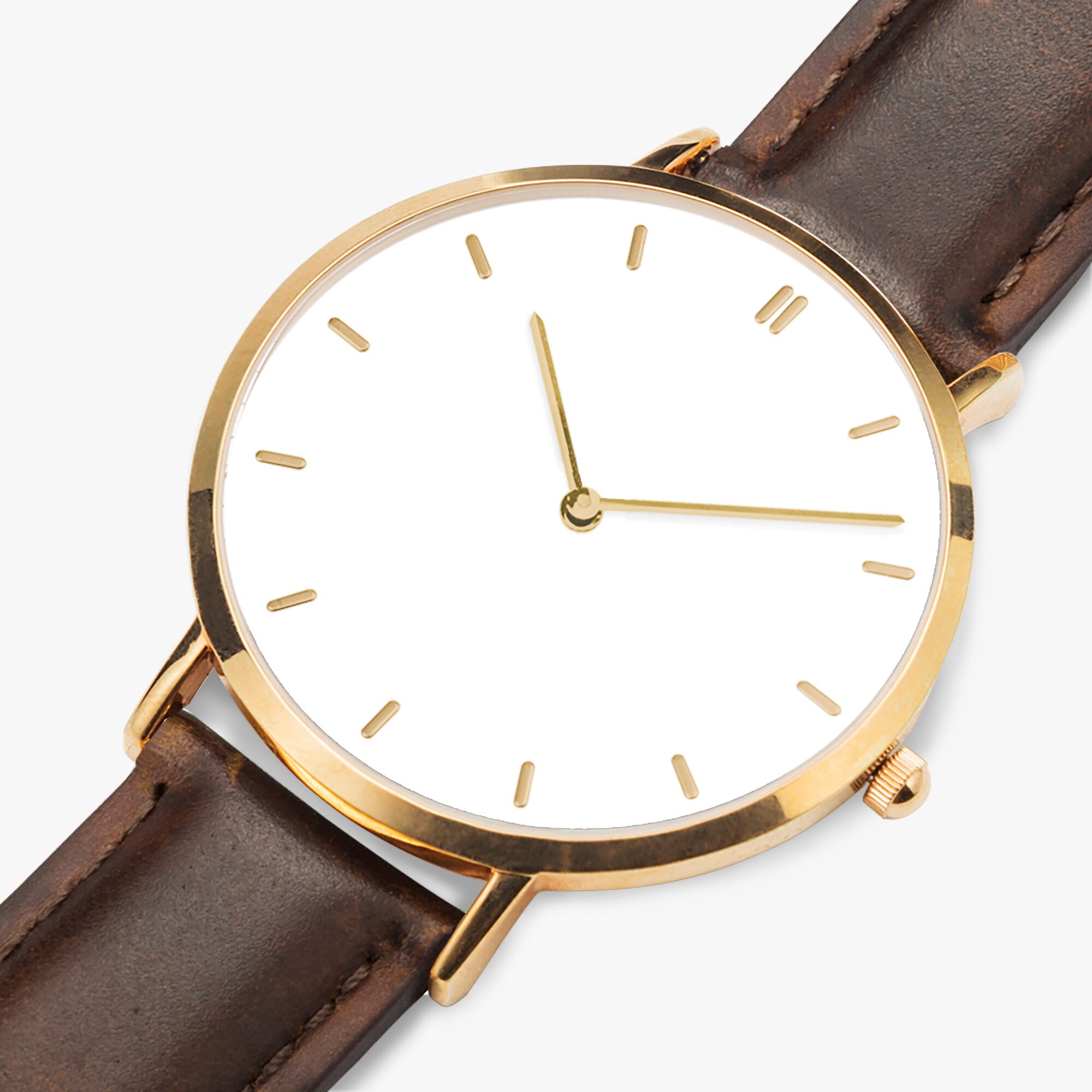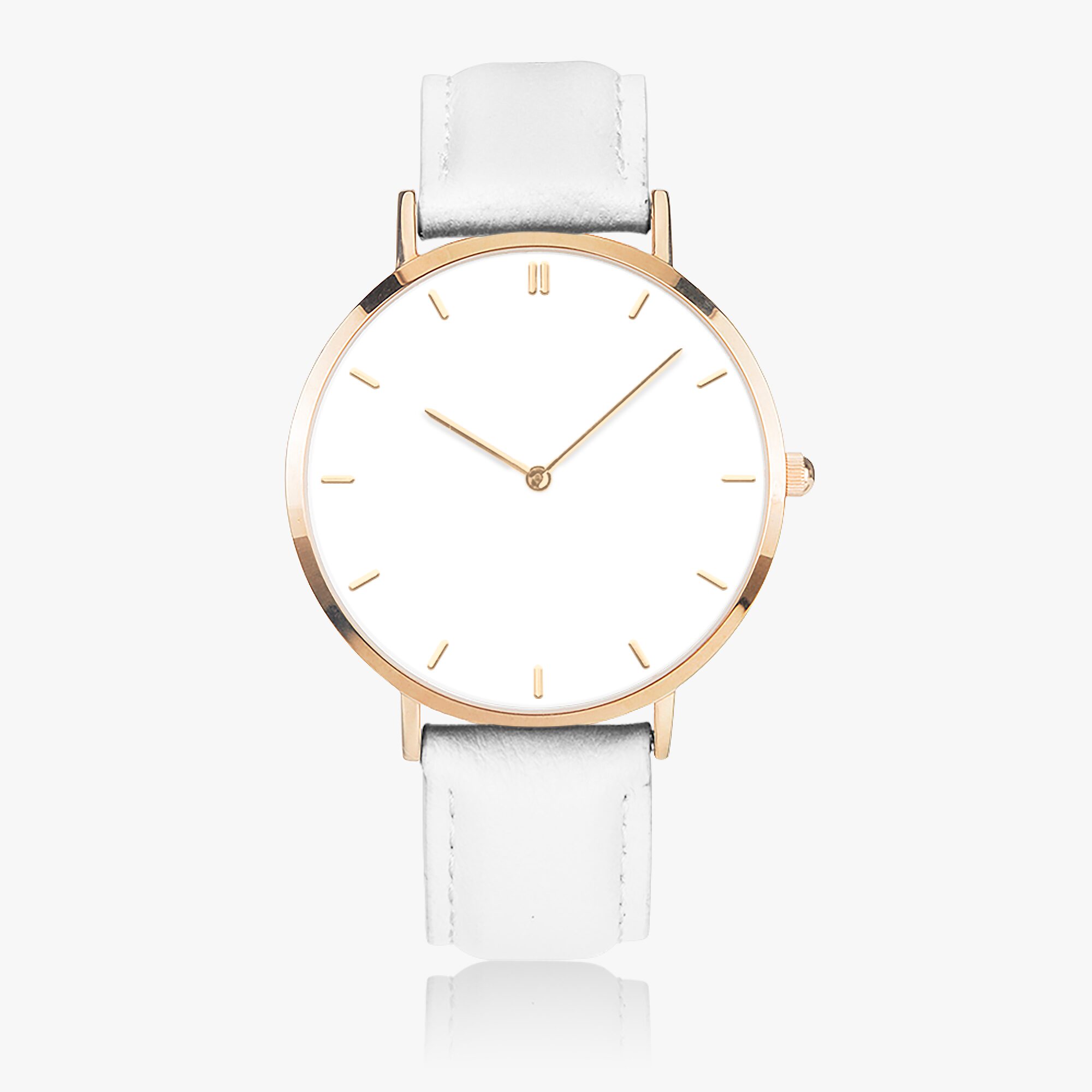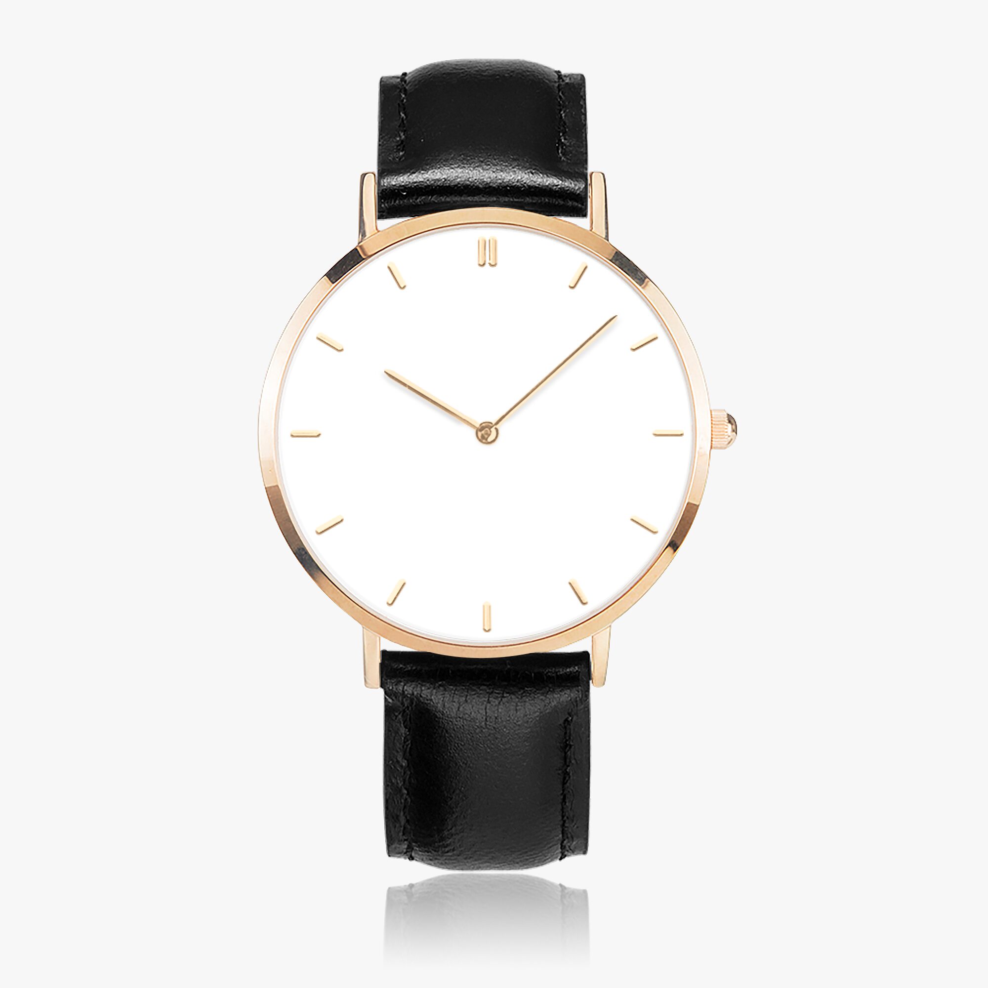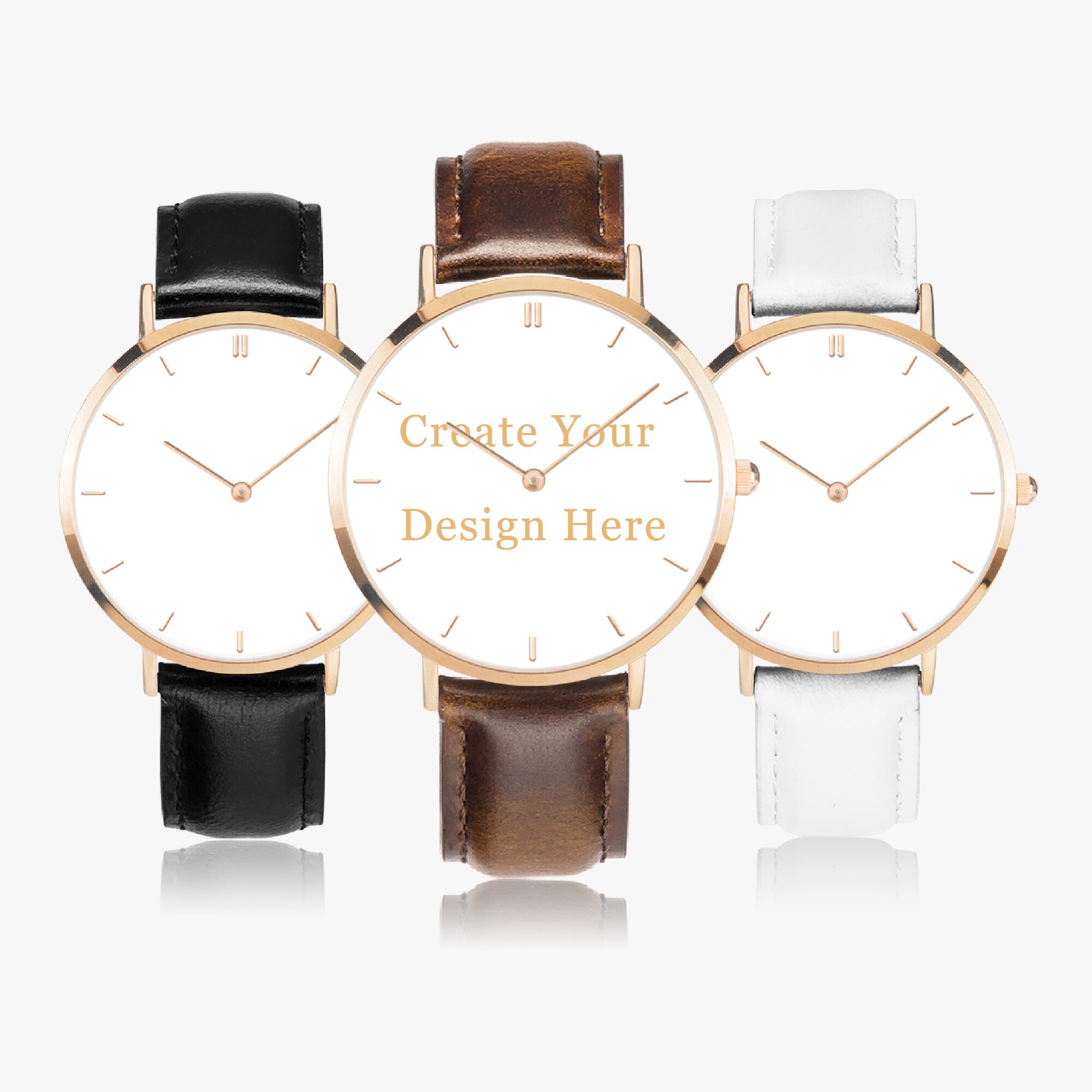 Ultra-Thin Rose Gold Quartz Watch with Leather Strap, Customize the entire clock background